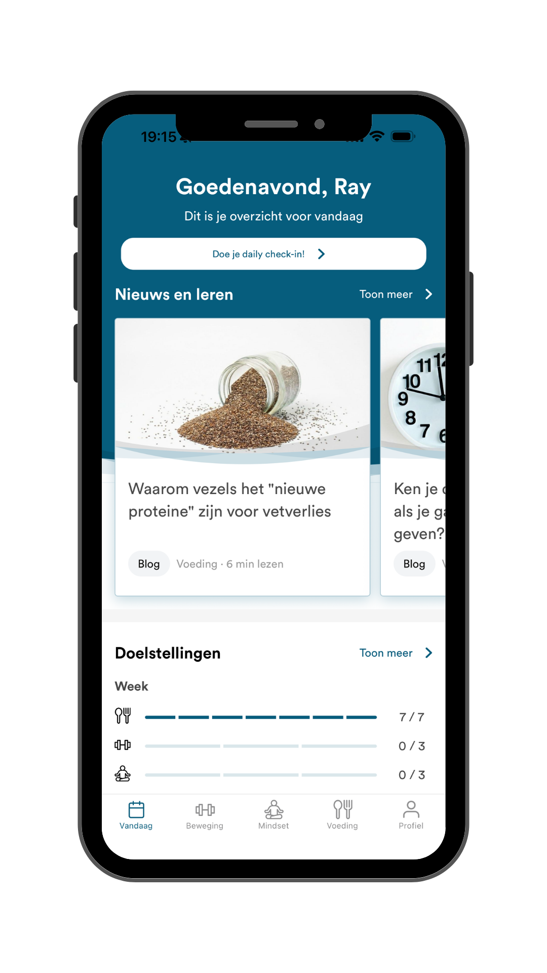 Elke week sta je even stil. Je vult je check-in in. Natuurlijk houden we je voortgang in de gaten, maar ik kijk vooral ook naar andere dingen: